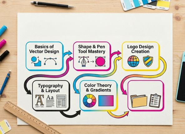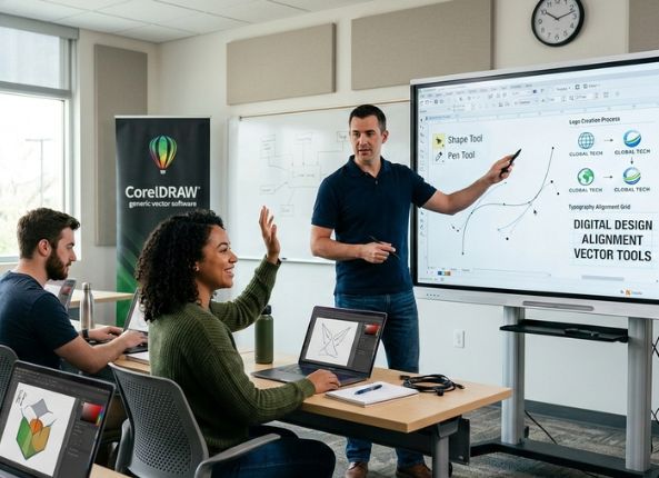 CorelDRAW course covering professional logo design, vector illustrations, layouts, and print-ready graphics for creative careers.